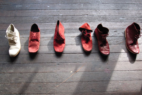 Elle décline les chaussures plates, ankle ou boots, en cuir de nuances froides, aux round toe, légèrement courbées vers le haut, à la semelle très longue, qui donne au final des aliens (mes préférées: skeleton key 2 boots, 1914-1918 black et les white hand painted)